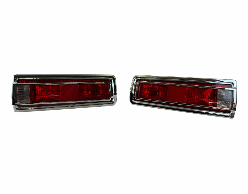 New reproduction tail light set for Datsun 510 1969-73. Very nice quality reproductions complete with back housing, lens, chrome trim, gasket and wiring harness. Includes left and right side.